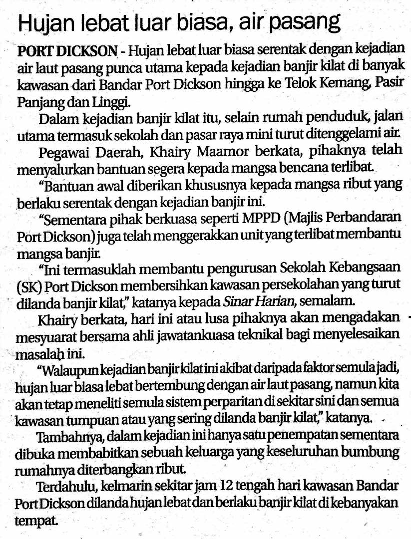 Tajuk :Hujan lebat luar biasa, air pasang