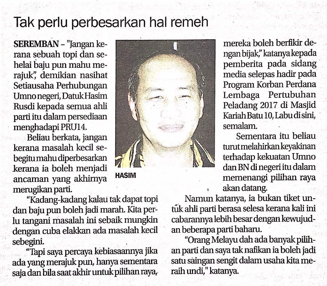 Tajuk :Tak perlu perbesarkan hal remeh