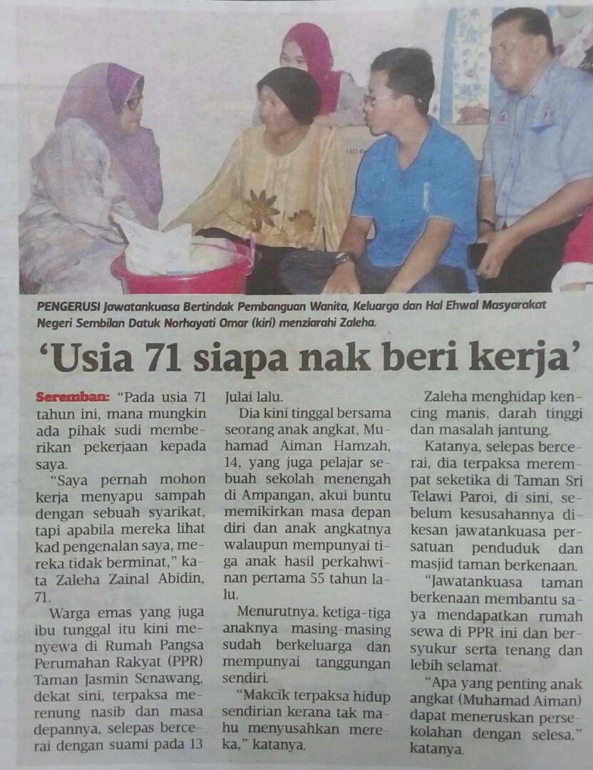 Tajuk :'Usia 71 siapa nak beri kerja'