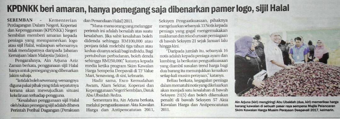 Tajuk :KPDDNK beri amaran, hanya pemegang saja dibenarkan pamer logo, sijil halal