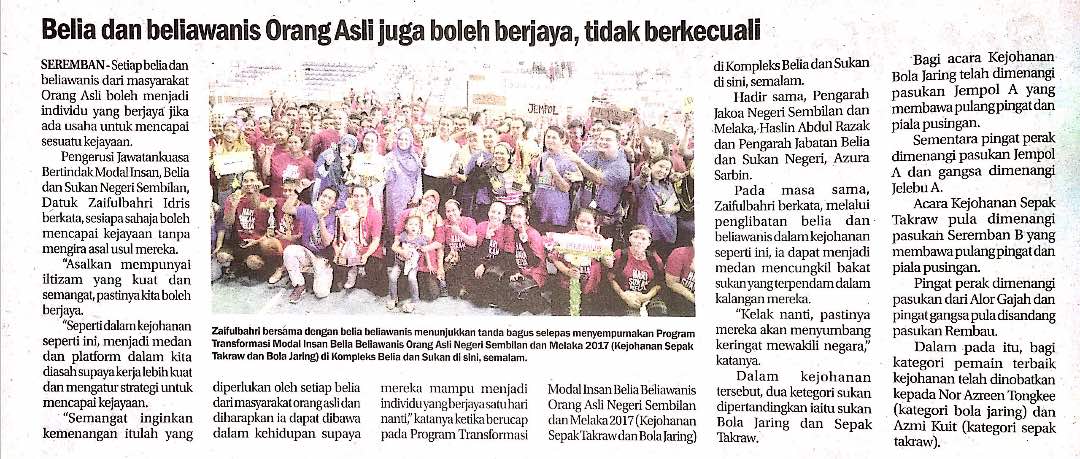 Tajuk :Belia dan beliawanis Orang Asli juga boleh berjaya, tidak terkecuali