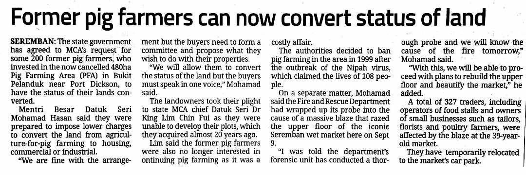 Tajuk :Former pig farmers can now convest status of land