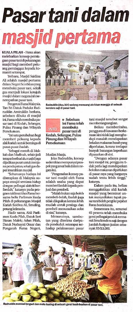 Tajuk :Pasar tani dalam masjid pertama