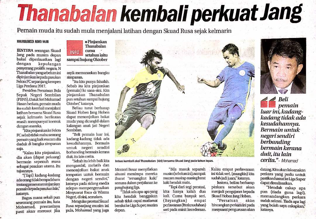 Tajuk :Thanabalan kembali perkuat Jang