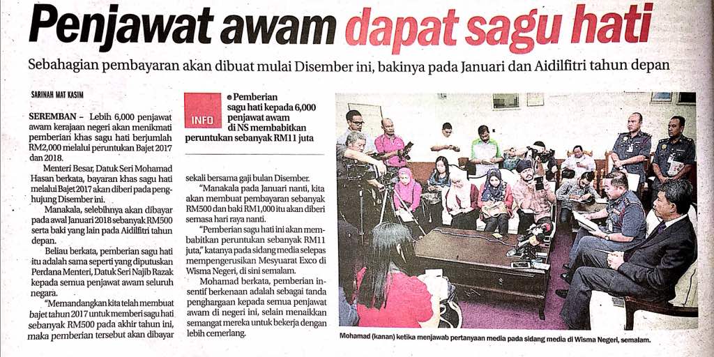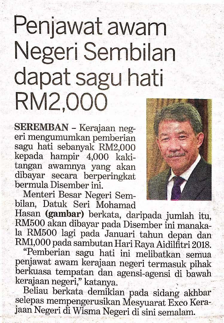 Tajuk :Penjawat awam Negeri Sembilan dapat sagu hati RM 2,000