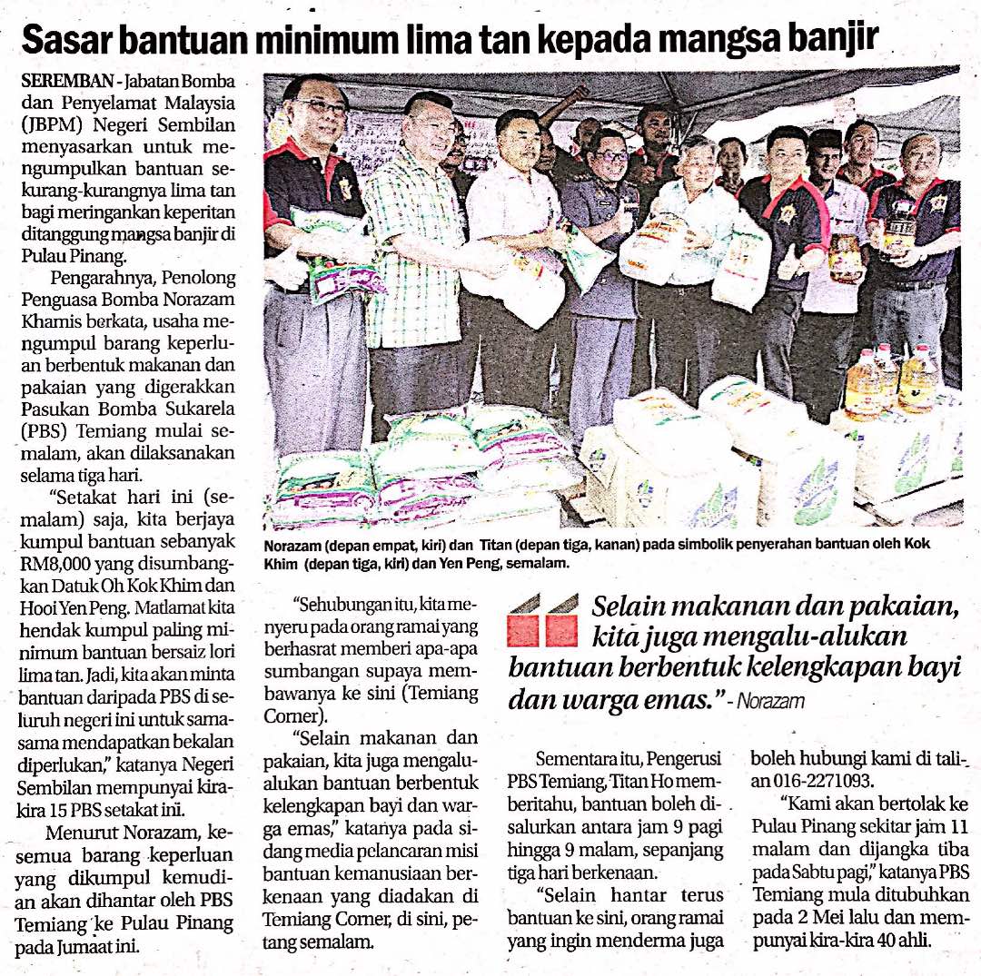 Tajuk :Sasar bantuan minimum lima tan kepada mangsa banjir
