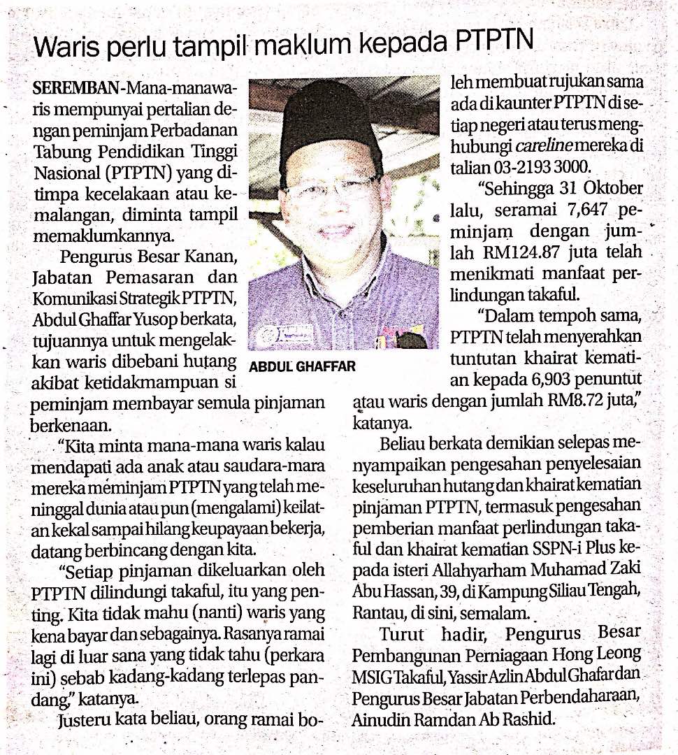 Tajuk :Waris perlu tampil maklum kepada PTPTN