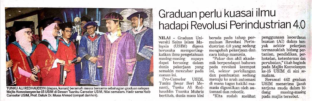 Tajuk :Graduan perlu kuasai ilmu hadapi Revolusi Perindustrian 4.0