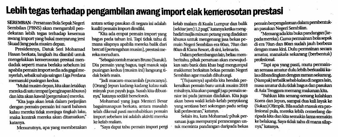 Tajuk :Lebih tegas terhadap pengambilan awang import elak kemerosotan prestasi