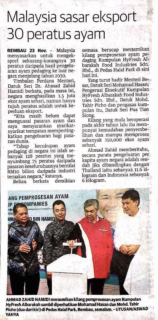 Tajuk :Malaysia sasar eksport 30 peratus ayam