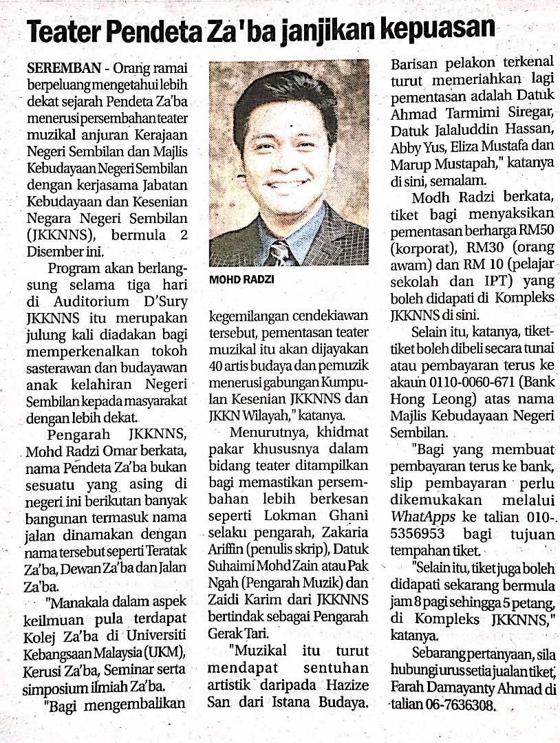 Tajuk :Teater Pendeta Za'ba janjikan kepuasan