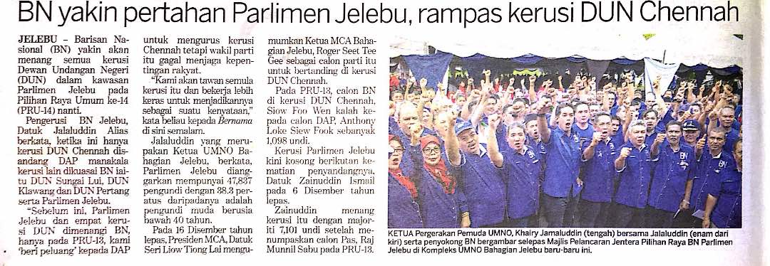 Tajuk : BN yakin pertahan Parlimen Jelebu, rampas kerusi DUN Chennah