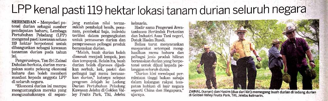 Tajuk : LPP kenal pasti 119 hektar lokasi tanam durian seluruh negara