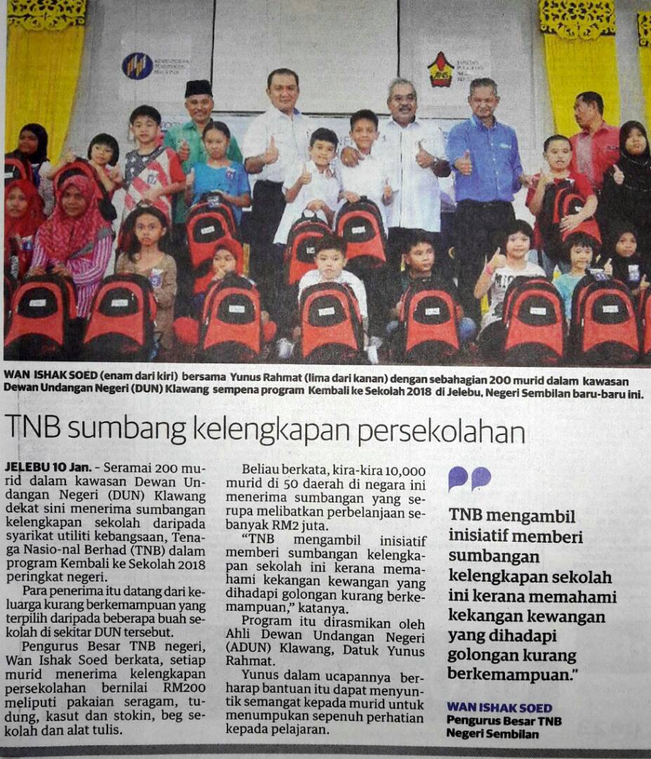 Tajuk : TNB sumbang kelengkapan persekolahan