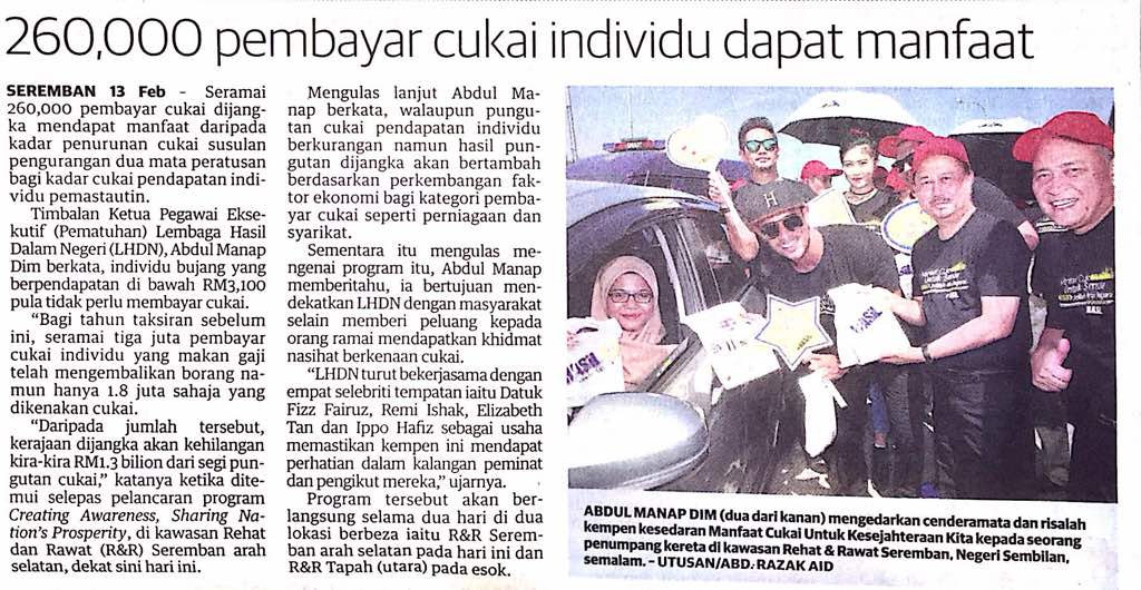 Tajuk :260,000 pembayar cukai individu dapat manfaat