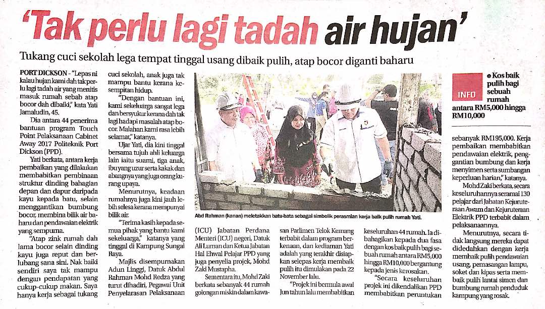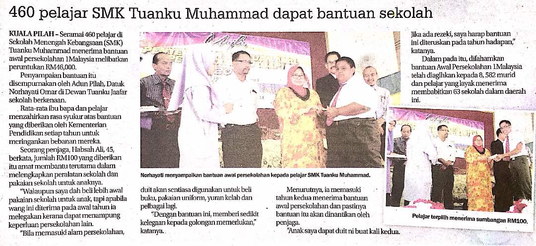 Tajuk :460 pelajar SMK Tuanku Muhammad dapat bantuan sekolah