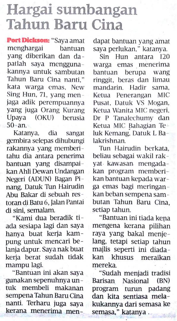 Tajuk : Hargai sumbangan Tahun Baru Cina