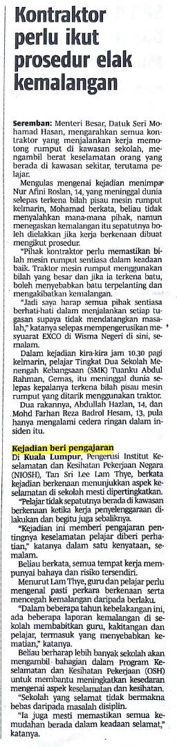 Tajuk :Kontraktor perlu ikut prosedur elak kemalangan