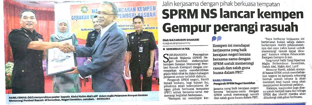 Tajuk : SPRM NS lancar kempen Gempur perangi rasuah