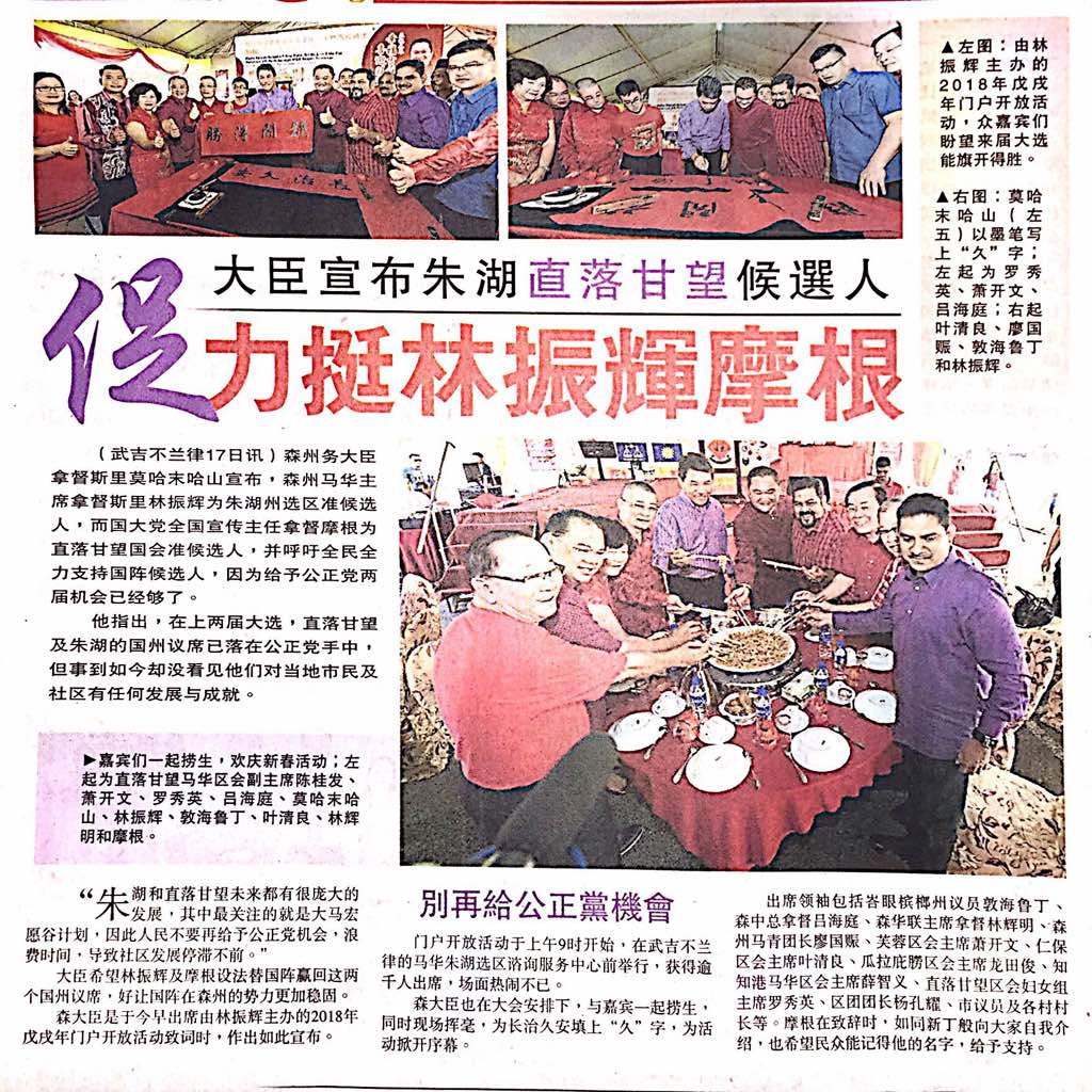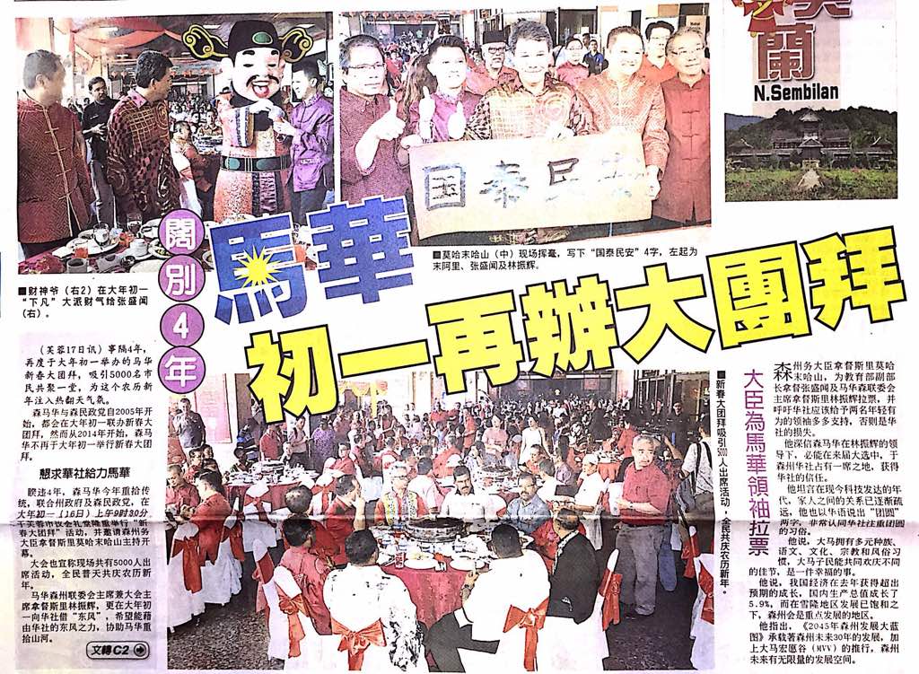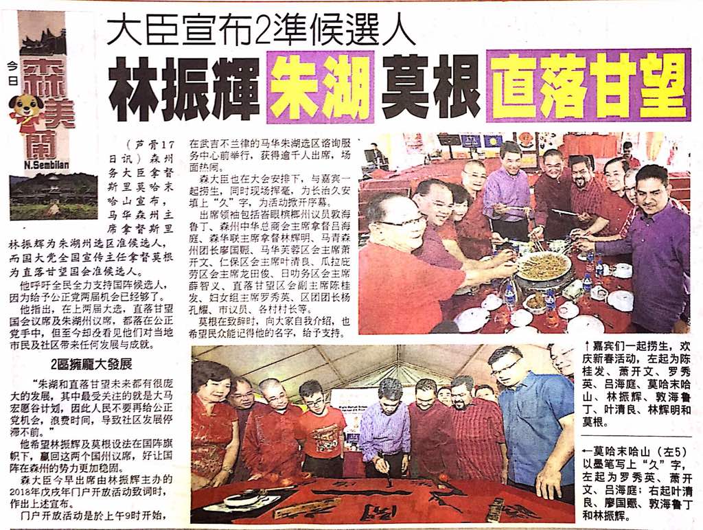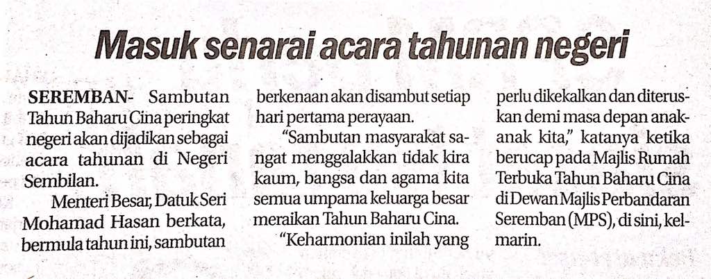 Tajuk :Bersama kaum Tionghua dan masyarakat pelbagai kaum di Majlis Rumah Terbuka Tahun Baru Cina 2018 peringkat Negeri Sembilan