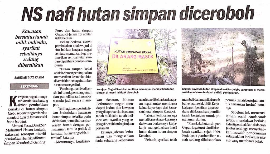 Tajuk : NS nafi hutan simpan diceroboh