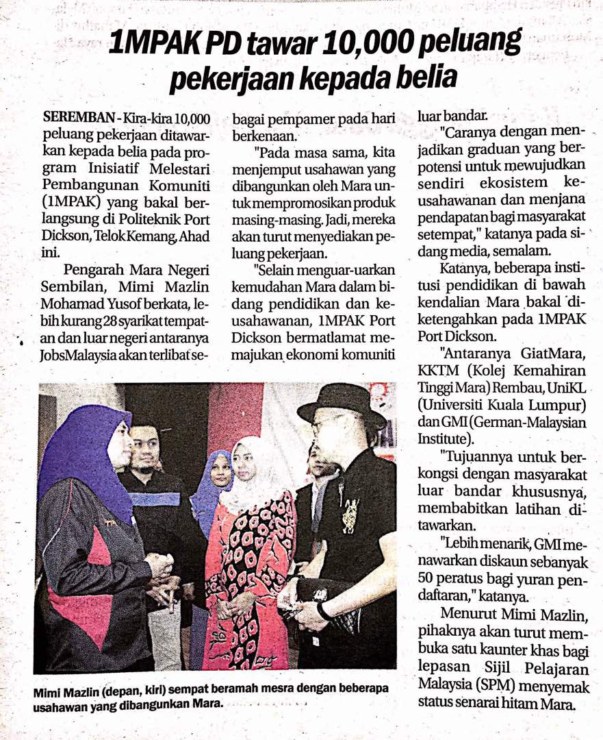 Tajuk :1MPAK PD 10,000 peluang pekerjaan kepada belia