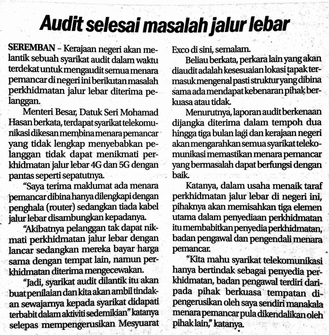 Tajuk :Audit selesai masalah jalur lebar