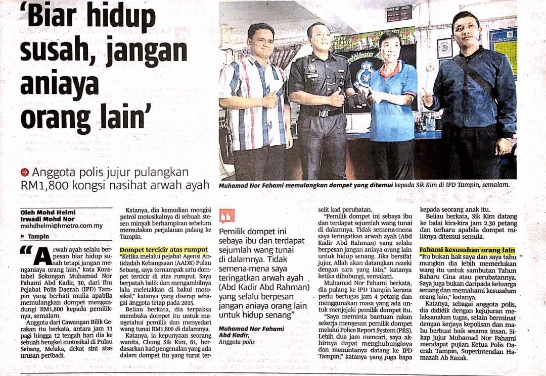 Akhbar :Harian Metro