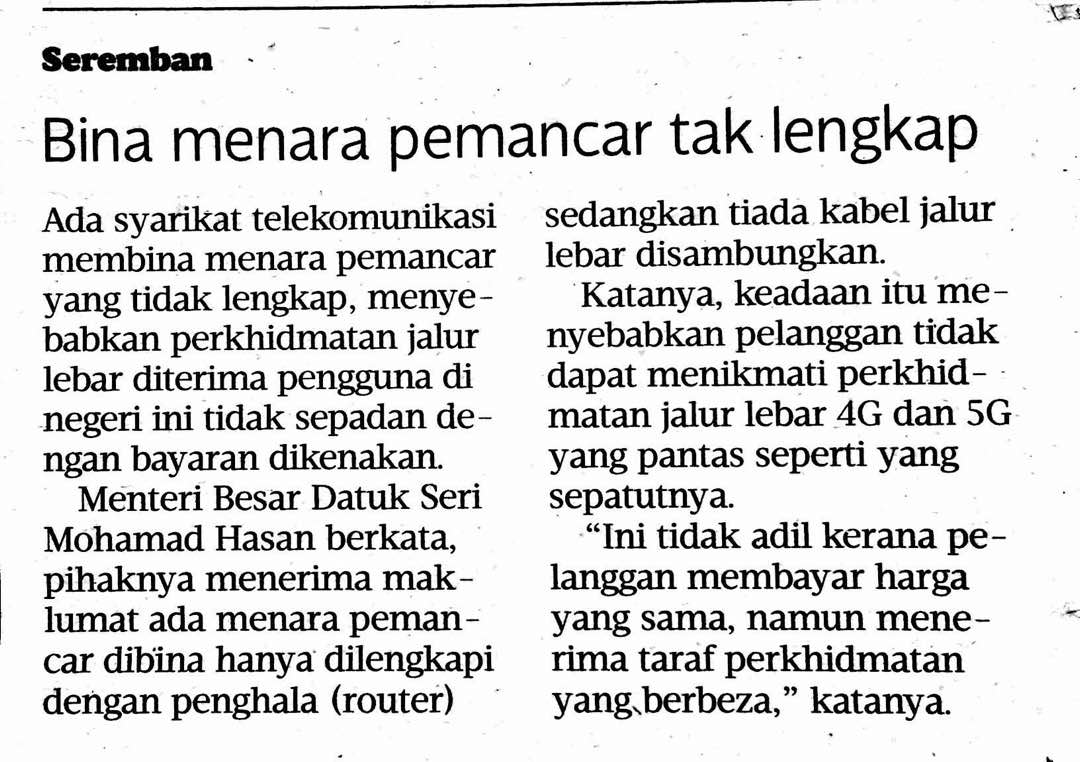 Tajuk :Bina menara pemancar tak lengkap
