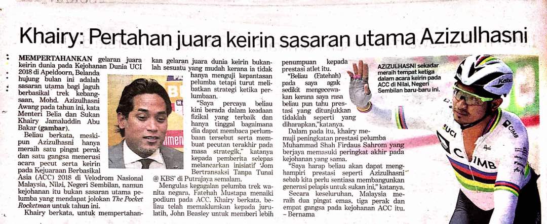 Tajuk :Khairy :Pertahan juara keirin sasaran utama Azizulhasni