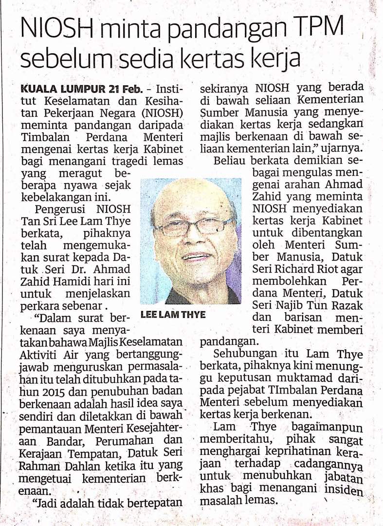 Tajuk : NIOSH minta pandangan TPM sebelum sedia kertas kerja