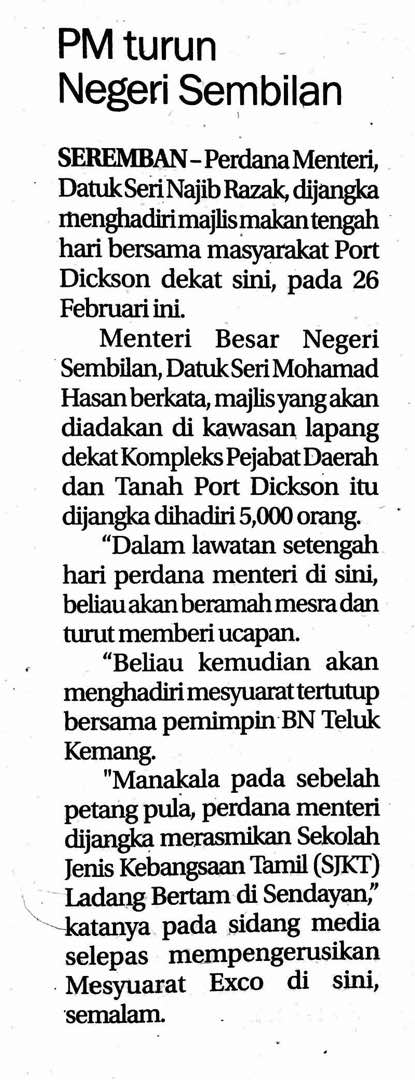 Tajuk :PM turun Negeri Sembilan