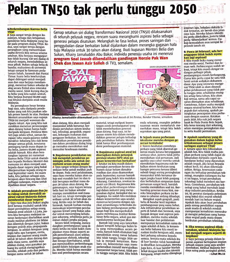 Tajuk :Pelan TN50 tak perlu tunggu 2050