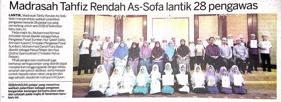 Tajuk :Madrasah Tahfiz Rendah As-Sofa Lantik 28 pengawas