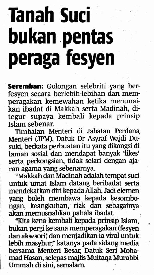 Tajuk : Tanah suci bukan pentas peraga fesyen