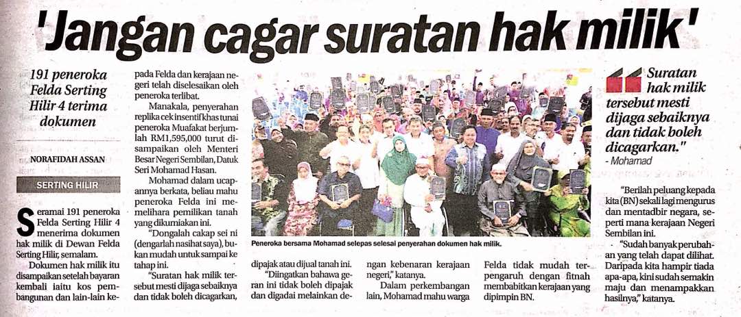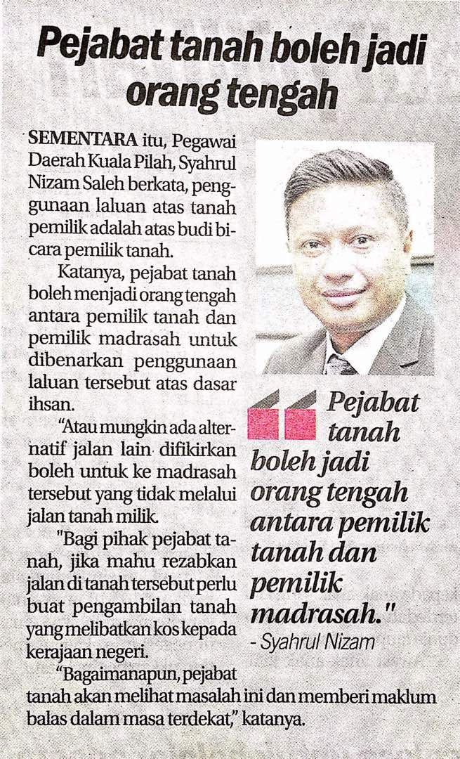 Tajuk :Pejabat tanah boleh jadi orang tengah