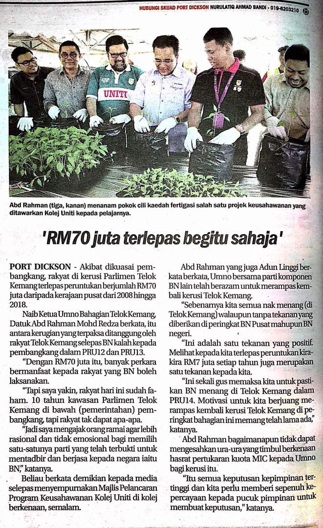 Tajuk :Majlis Perbandaran Nilai bercadang menukar pasar basah di salah satu taman di kawasan tersebut dijadikan kawasan medan selera memandangkan ia lebih bersesuaian untuk kemudahan orang ramai