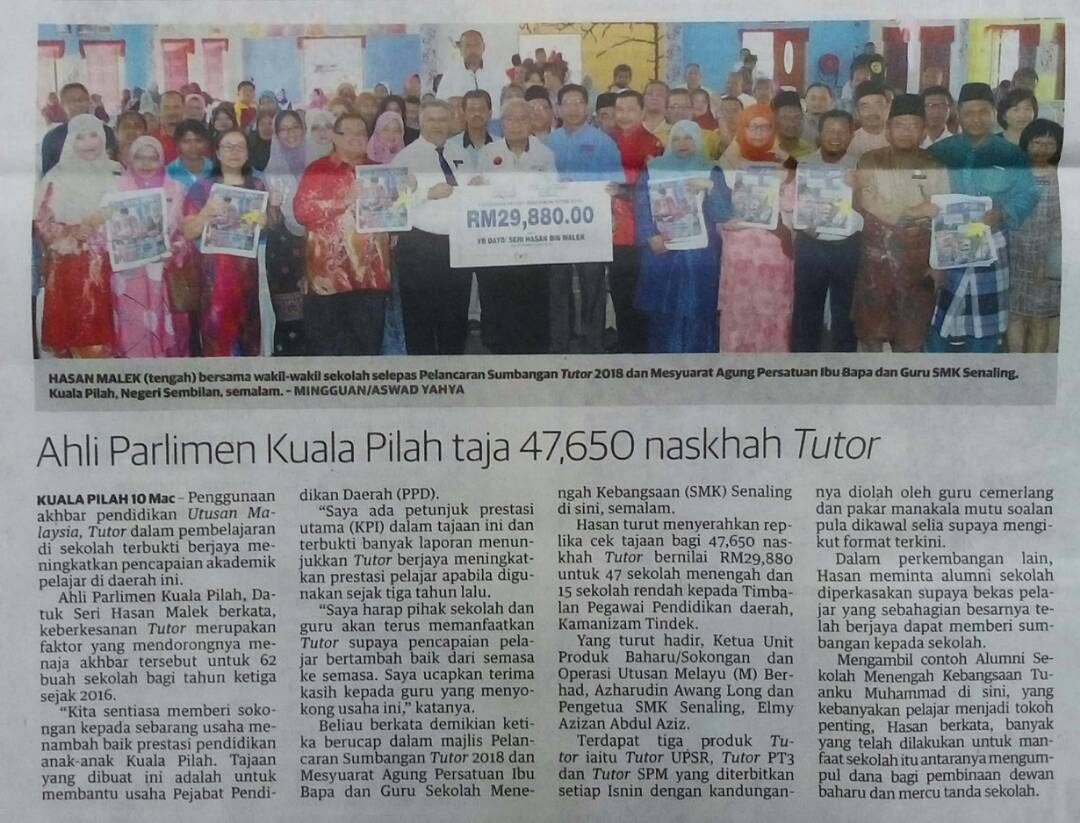 Tajuk :Ahli Parlimen Kuala Pilah Taja 4,7650 naskah Tutor