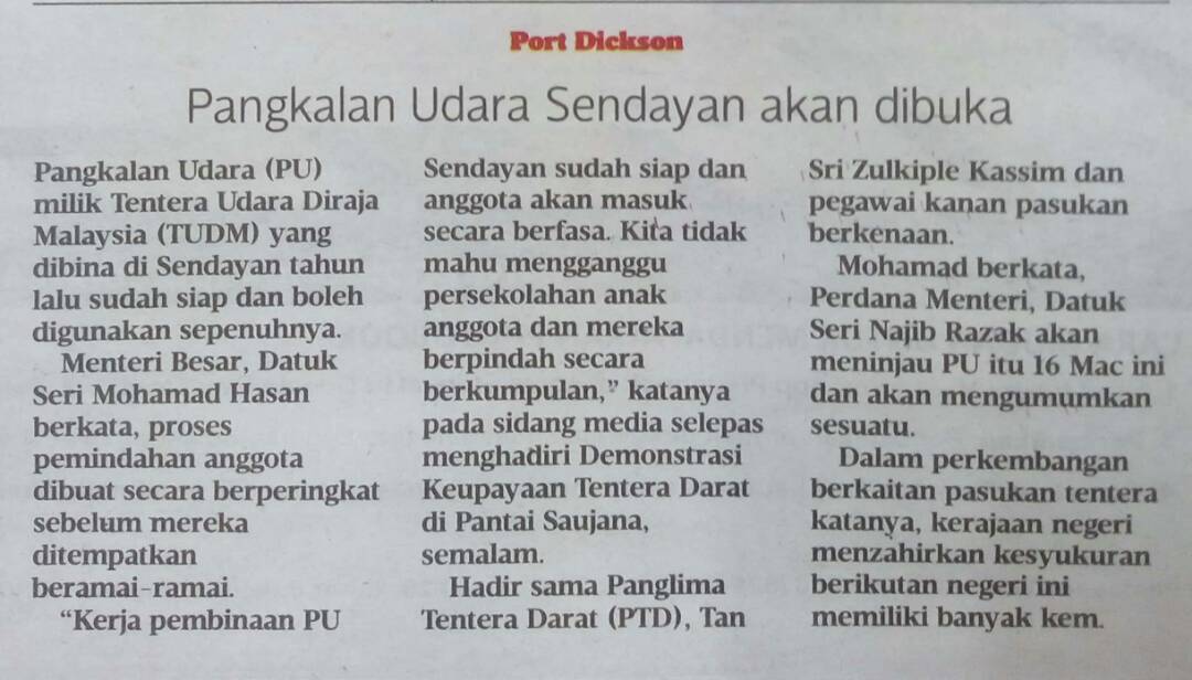 Tajuk :Pangkalan udara Sendayan akan dibuka