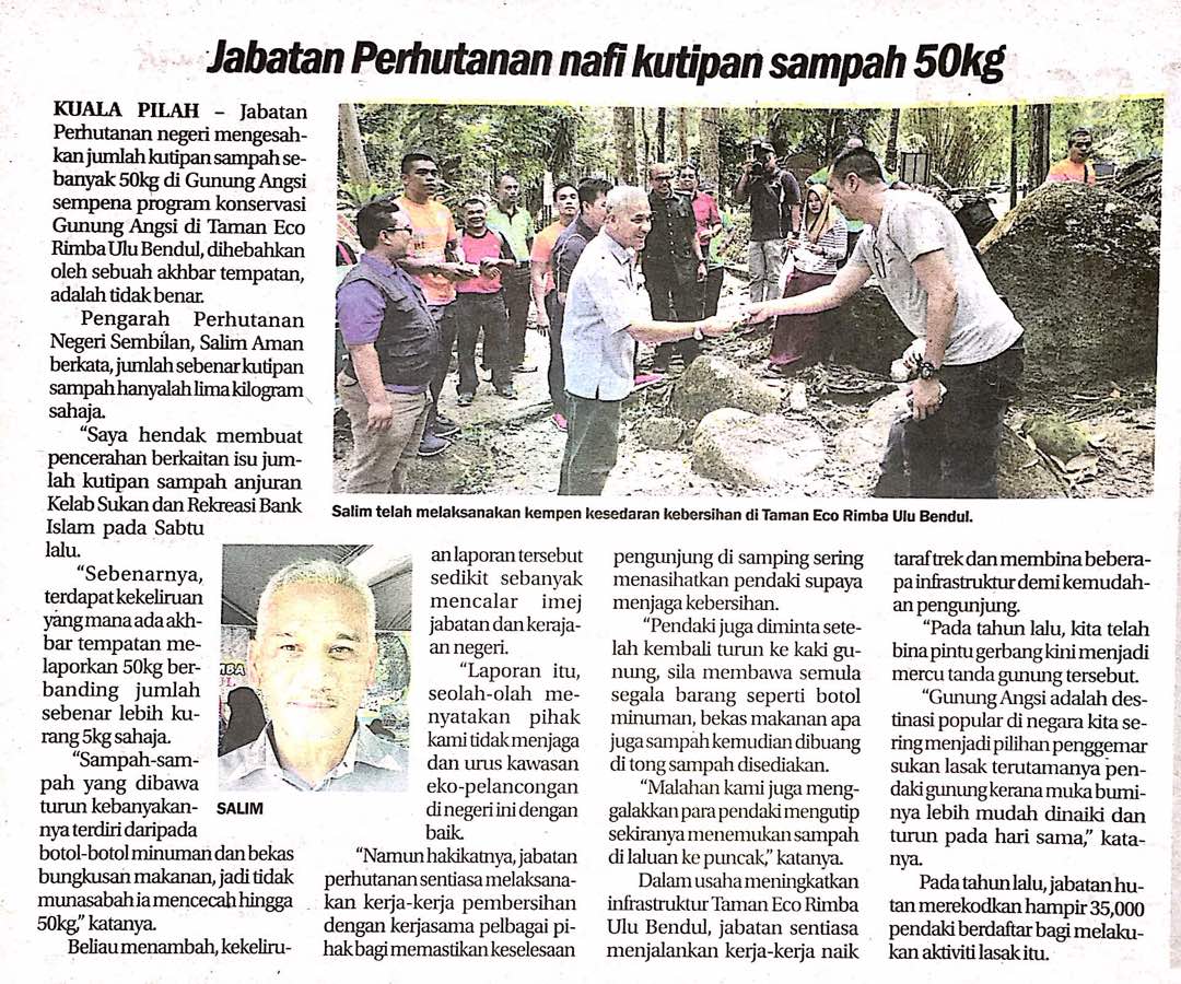 Tajuk :Jabatan Perhutanan nafi kutipan sampah 50kg