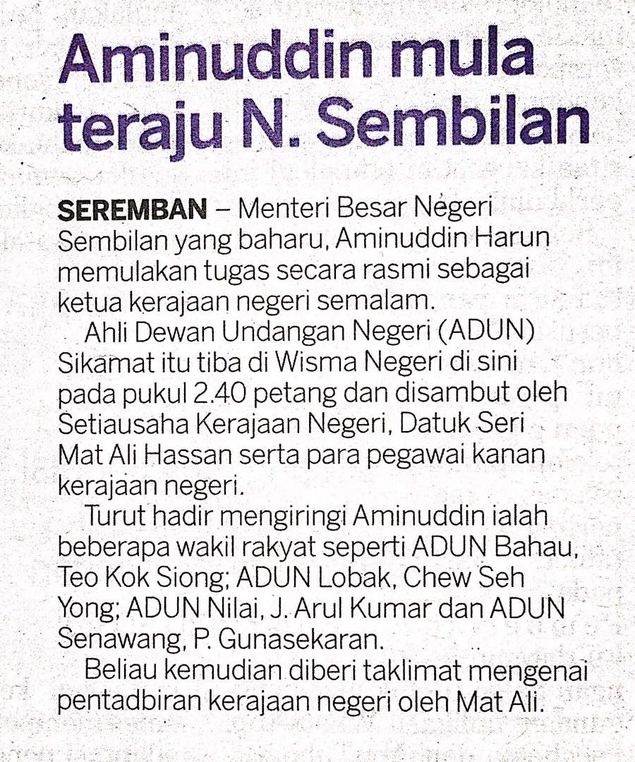 Tajuk :Aminuddin mula teraju N. Sembilan