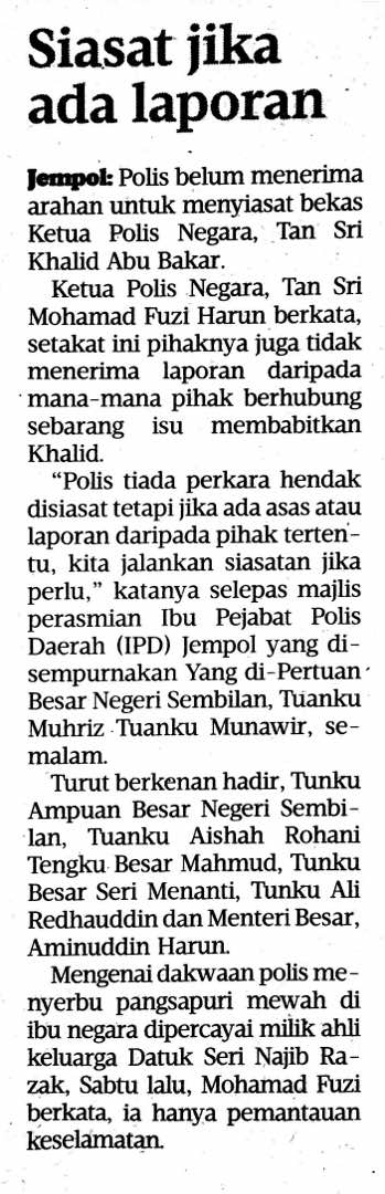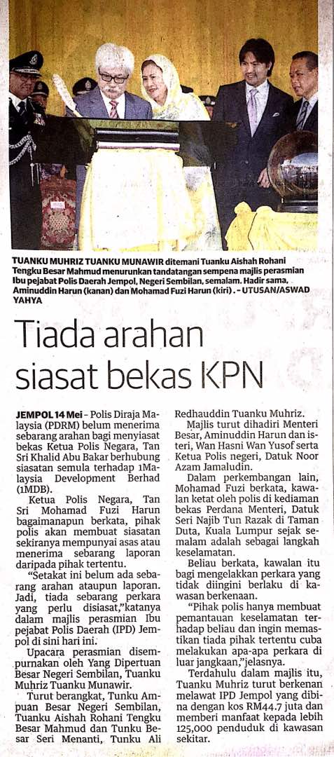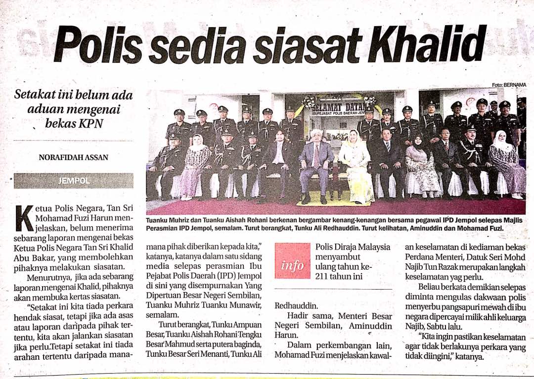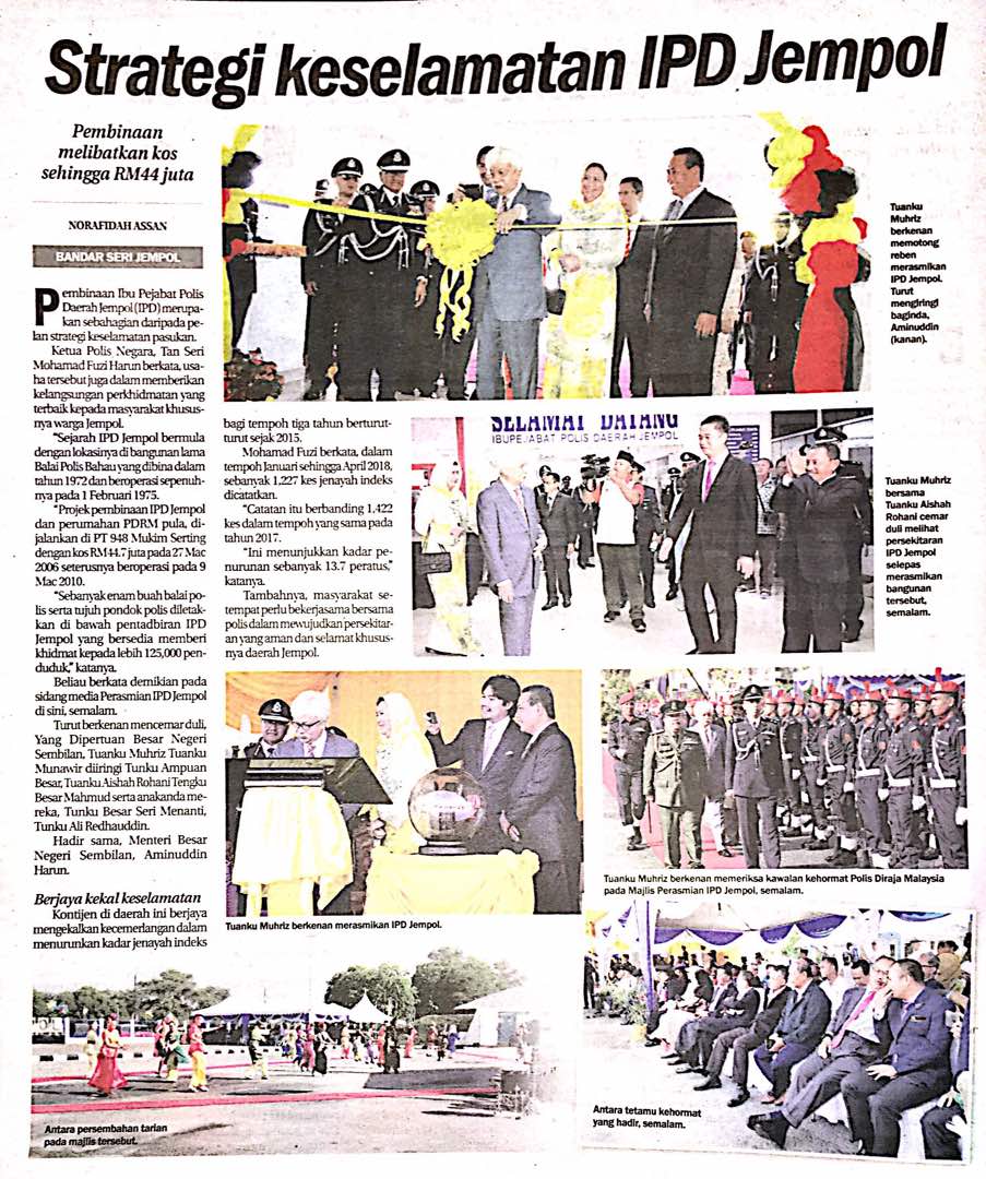 Tajuk :Tuanku Muhriz Tuanku Munawir bersama Tuanku Aishah Rohani berkenan bergambar kenangan dengan pegawai IPD Jempol selepas Perasmian IPD Jempol semalam