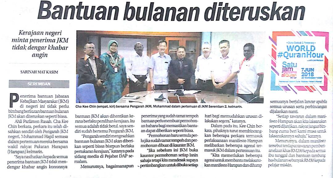 Tajuk :Bantuan bulanan diteruskan