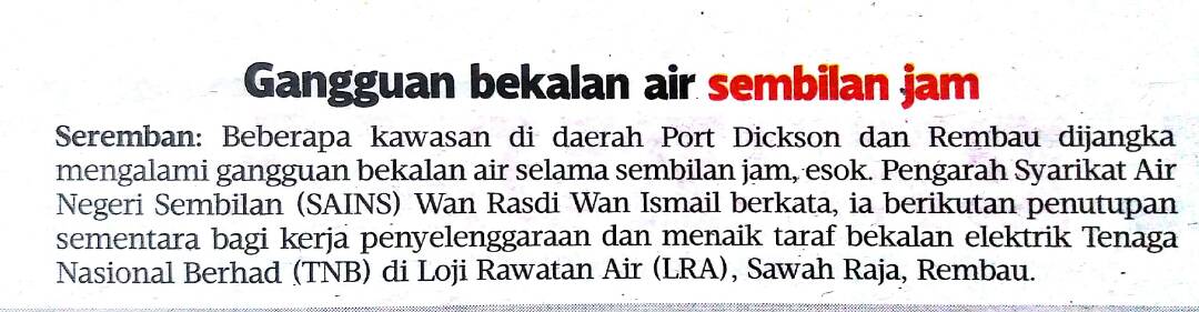 Tajuk :Gangguan bekalan air sembilan jam