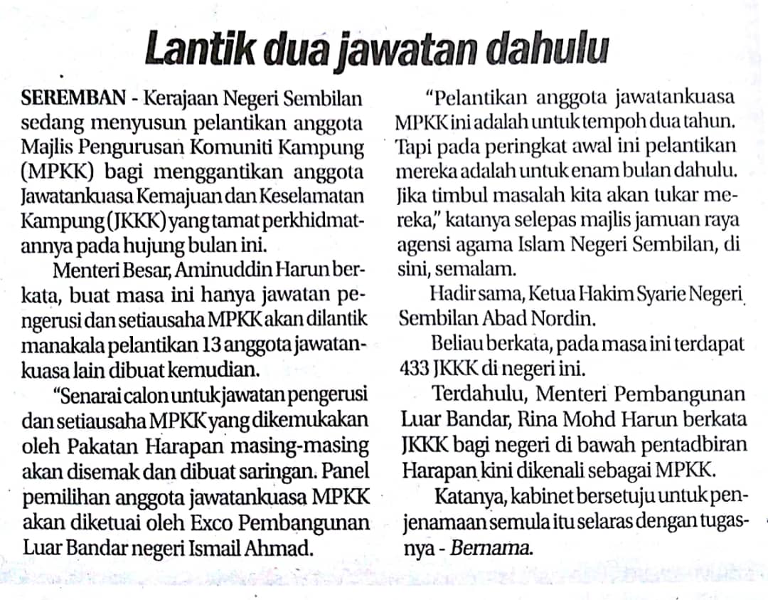 Tajuk :Lantik dua jawatan dahulu