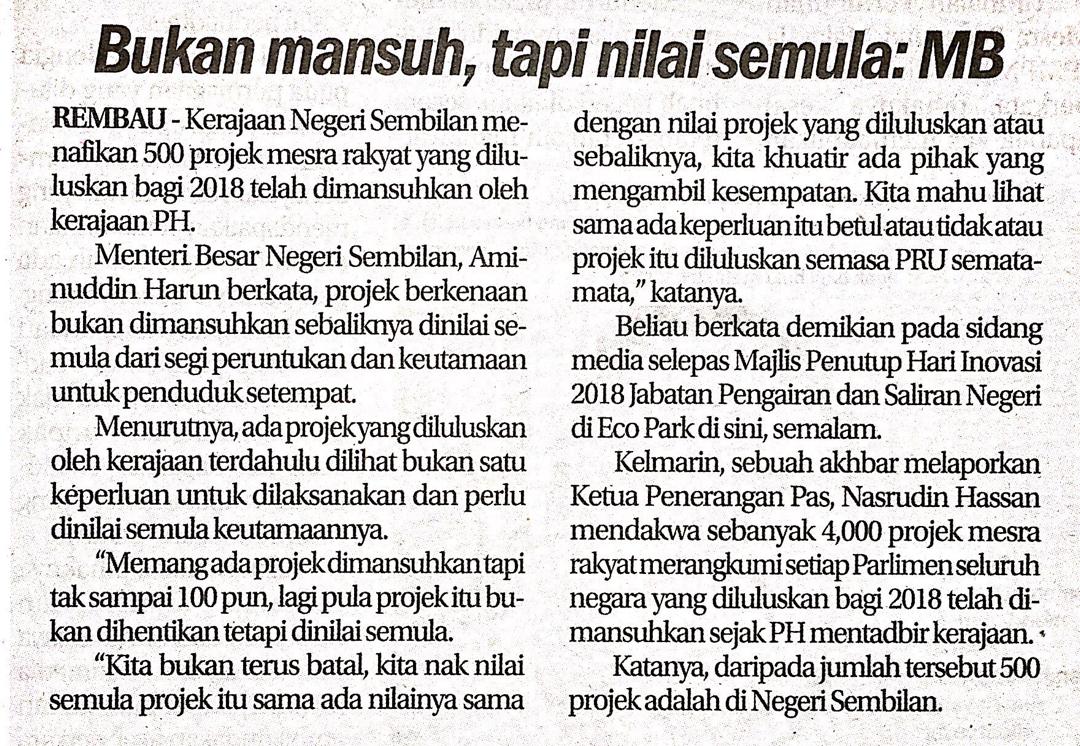 Tajuk :Bukan mansuh, tapi nilai semula:MB