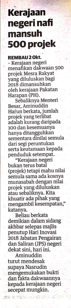 Tajuk :Kerajaan negeri nafi mansuh 500 projek