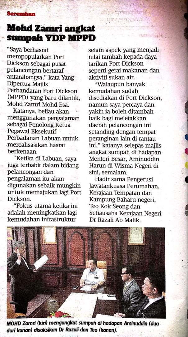 Tajuk :Mohd Zamri angkat sumpah YDP MPPD