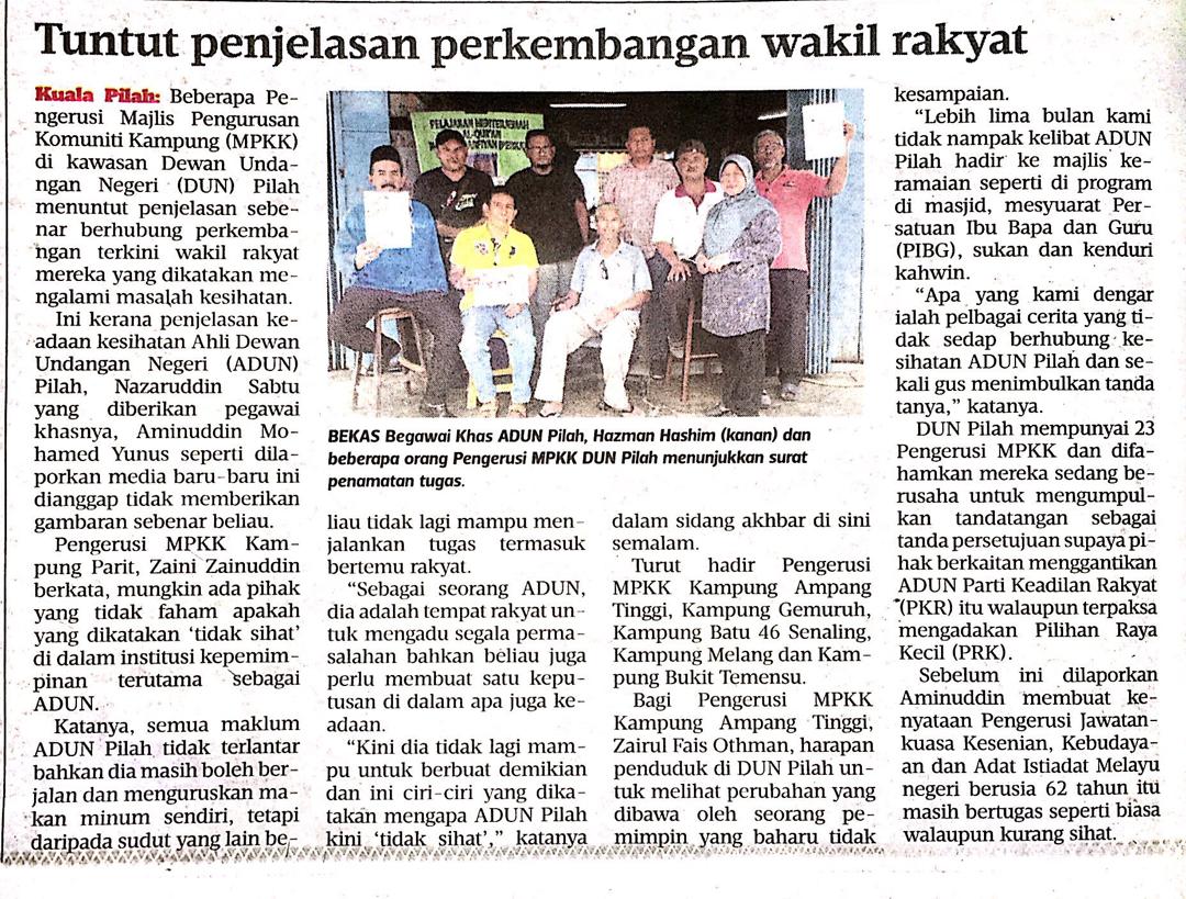 Tajuk :Tuntut penjelasan perkembangan wakil rakyat