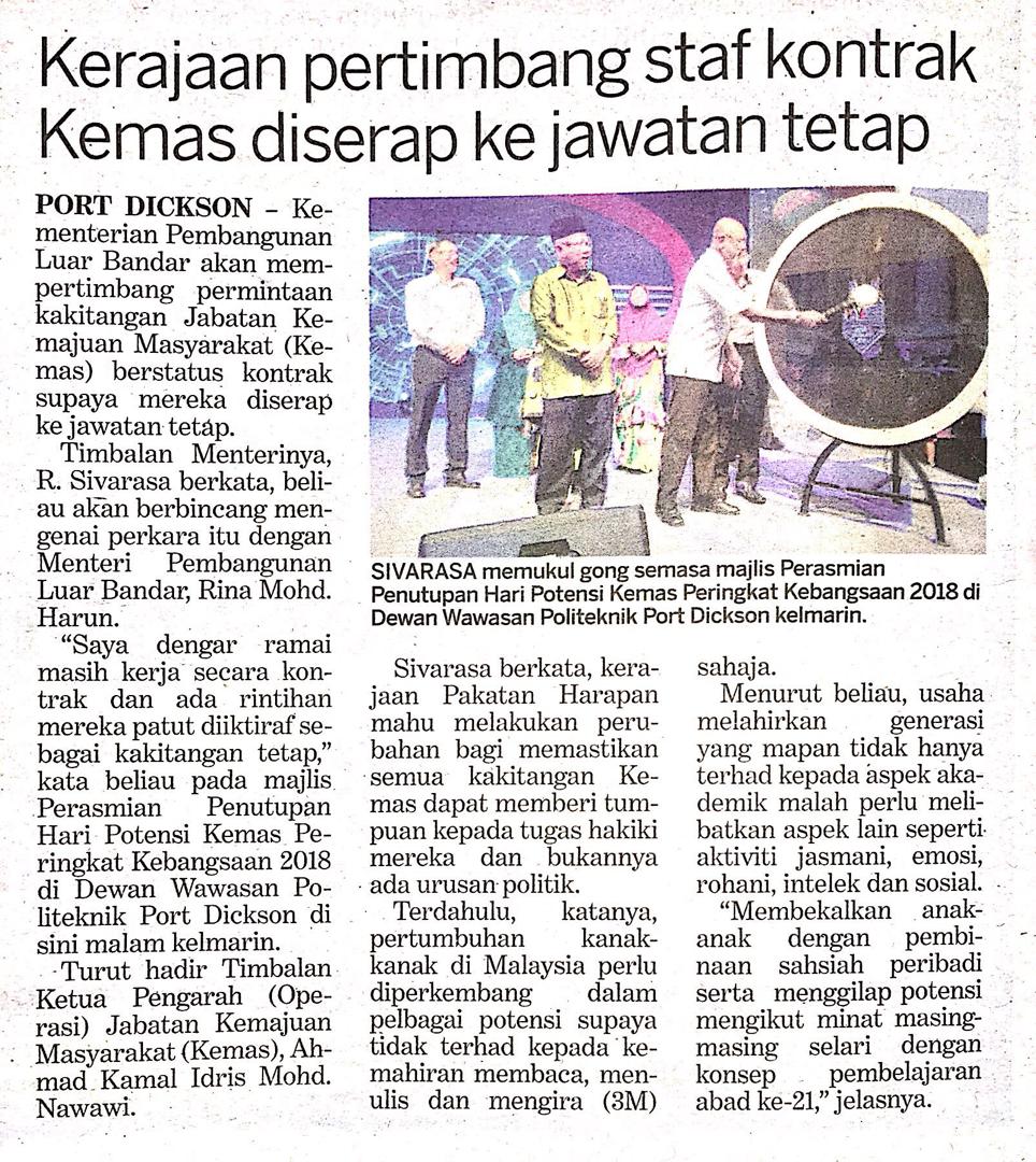 Tajuk :Kerajaan pertimban staf kontrak Kemas diserap ke jawatan tetap